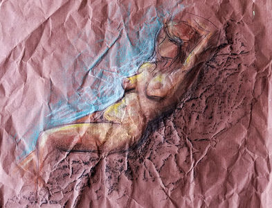 Le corps de la femme me permet d’explorer le sacré, la chair. Nu il se dévoile, puis se voile de matières, de couleurs. Ses formes rondes génèrent l’envie et le questionnement. Autour d’elle une histoire, toujours. Mais que voit-on ?
